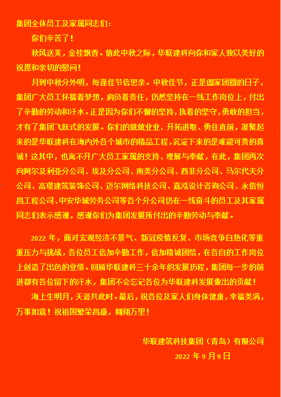 中秋佳節(jié)華聯(lián)建科慰問海內(nèi)外員工